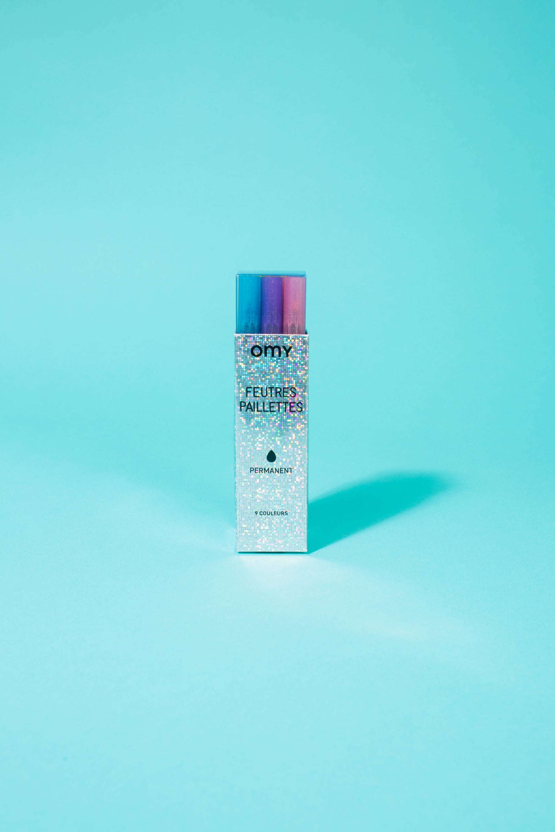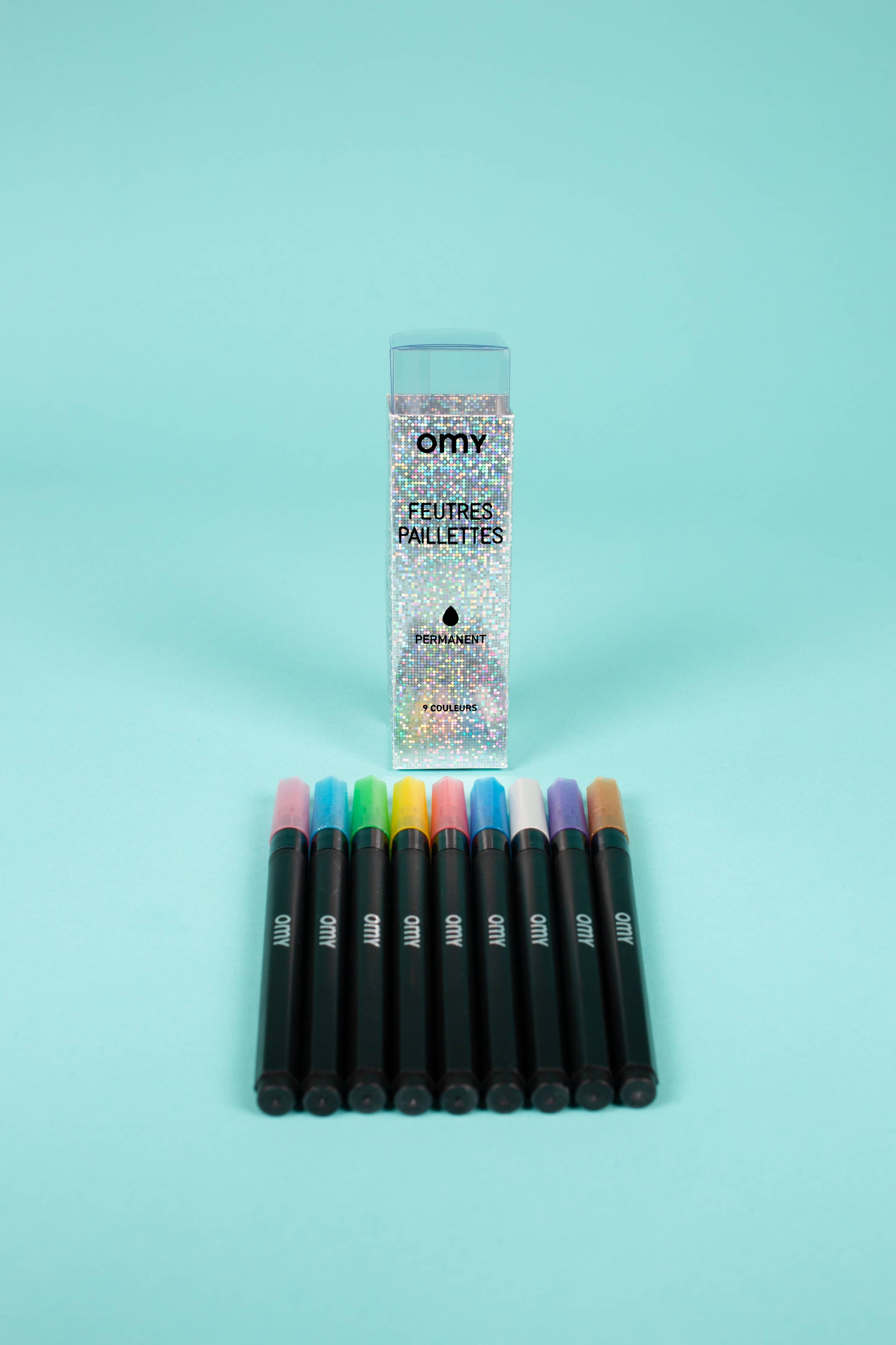 Bring sparkles to your colorings with the Glitter Markers! The shimmery colors bring depth and sparkles to your drawings. Press markers down to bring glitters out. Use on any color paper and surfaces. Assortment of 9 waterproof and sunroof glitter colors: blue, violet, yellow, silver, green, pink...