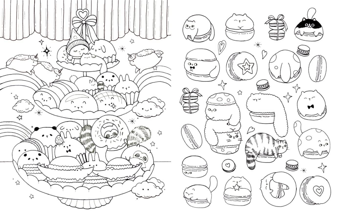 Explore the enticing world of kawaii in this beautiful coloring book! Enter the adorable world of kawaii in this coloring book full of cute animals, monsters, and food! From bunnies in cupcake tins, to hedgehogs with farfalle bowties, to cats on macarons, kawaii fans of all ages can add to the cuteness by coloring in pages of intricate, beautiful designs. Paperback book; 7 x 9 inches; 64 pages.