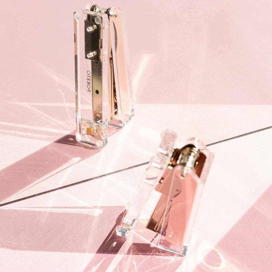 With clean-cut angles and gleaming metallic details, this acrylic stapler brings a minimalist, lighter-than-air approach to desk supplies. As beautiful as it is functional, you can stylize your workspace with its clear, classic functionality.