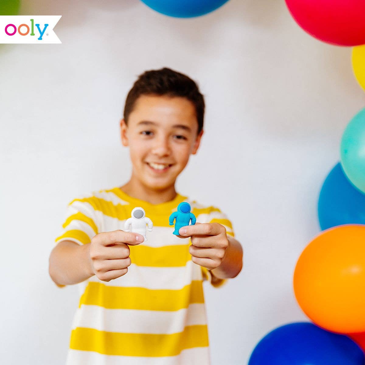 These astronaut erasers are perfect for little hand to grip and play with and also erasing pencil mistakes. The 3 novelty erasers come in green blue and white.