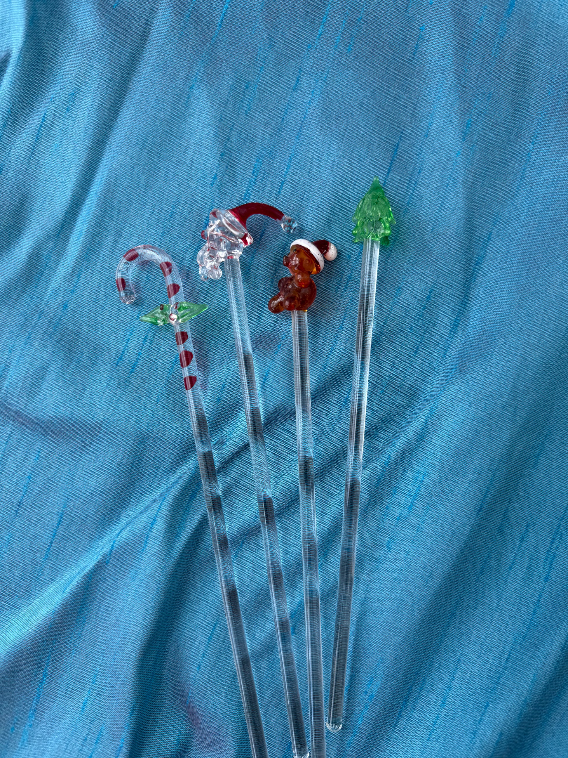 Blown Glass Christmas Themed Cocktail Stirrers - Set of 4