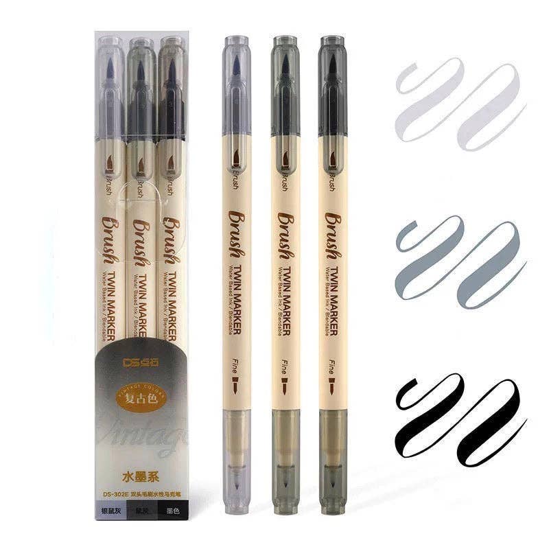 Brush Twin Marker Pen Set|Double-Side Pen set|Calligraphy Pen| Hand Lettering: Brown set