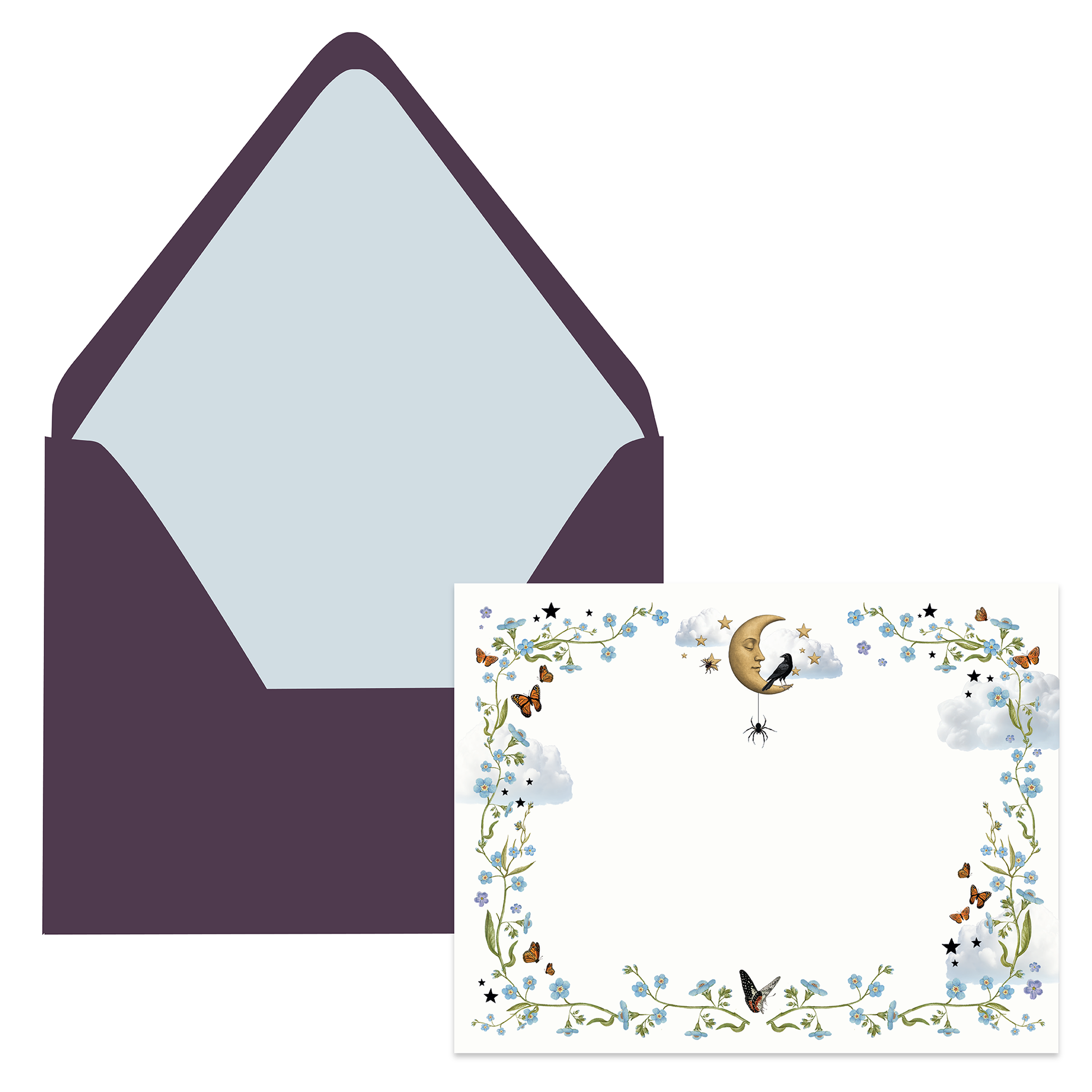 This digitally printed stationery set boasts 10 paper cards and 10 lined envelopes.
