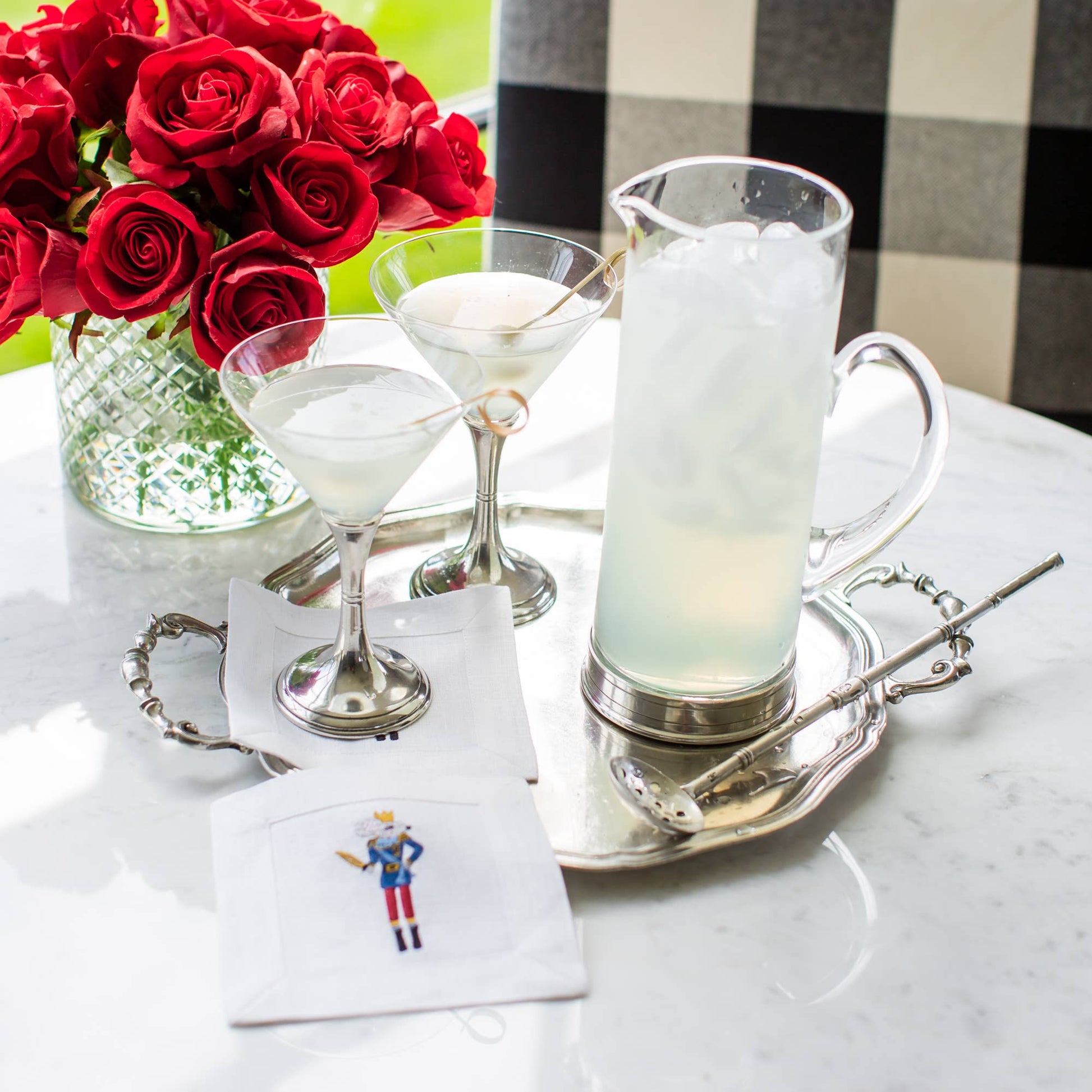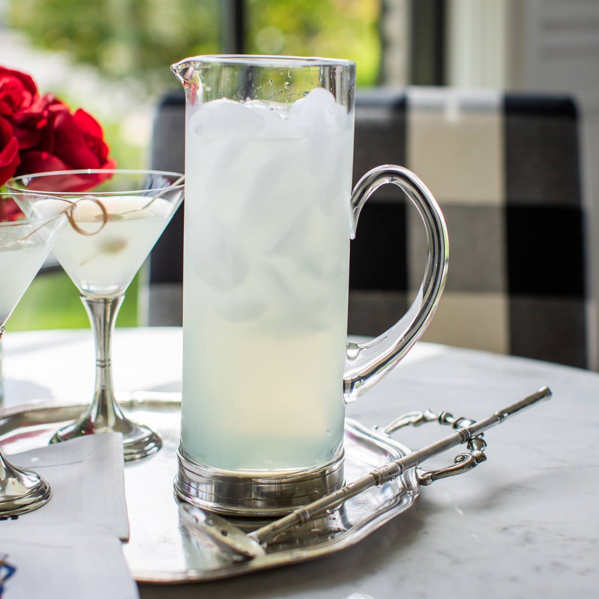New! The perfect glass and pewter pitcher for anyone's bar. Handmade in Italy. Hand wash.