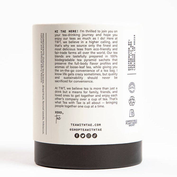 The perfect medium-sized gift for any occasion under $20. Each large tube is 3.5” wide and 4.5” tall and is made from 100% recyclable rigid paper tube material that is comparable to beautiful candle packaging. Inside are 16 pyramid tea bags that are made from premium, plastic-free, biodegradable material. Each tea bag holds approximately 2-2.5 grams of whole-leaf tea and herbs. Most customers get at least 2-3 steepings out of each bag.