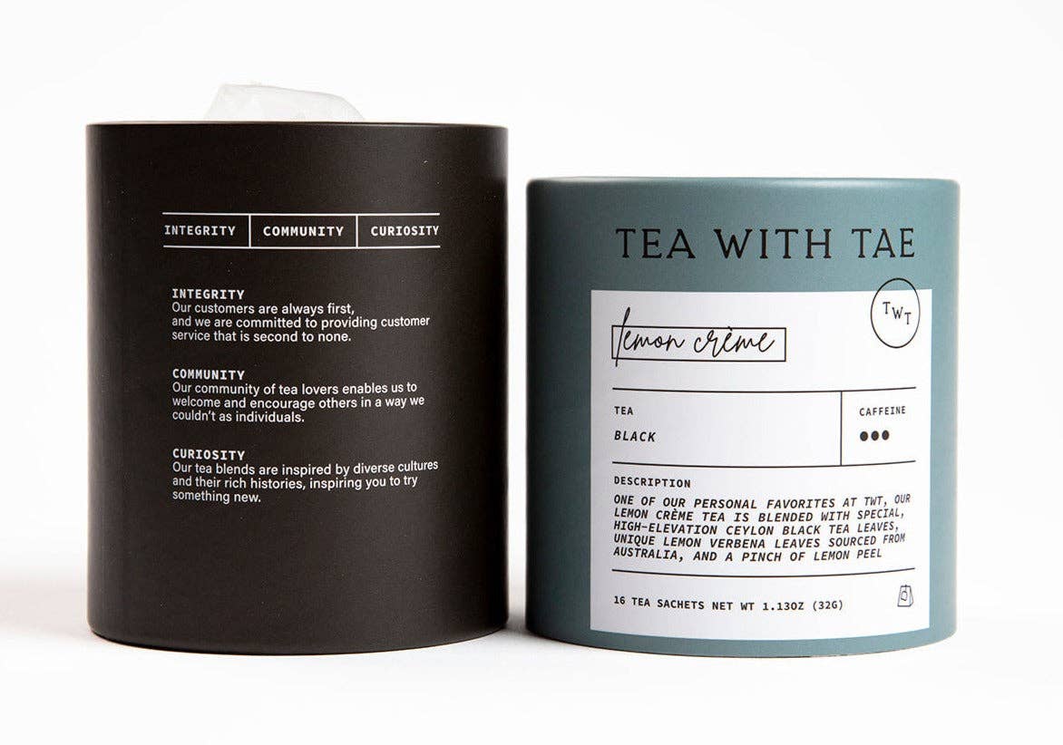LEMON CREME: A zesty and creamy black tea blend that's specially made with high-elevation Ceylon black tea leaves and lemon verbena sourced from Australia. It's similar to lemonade but without any sugars!
