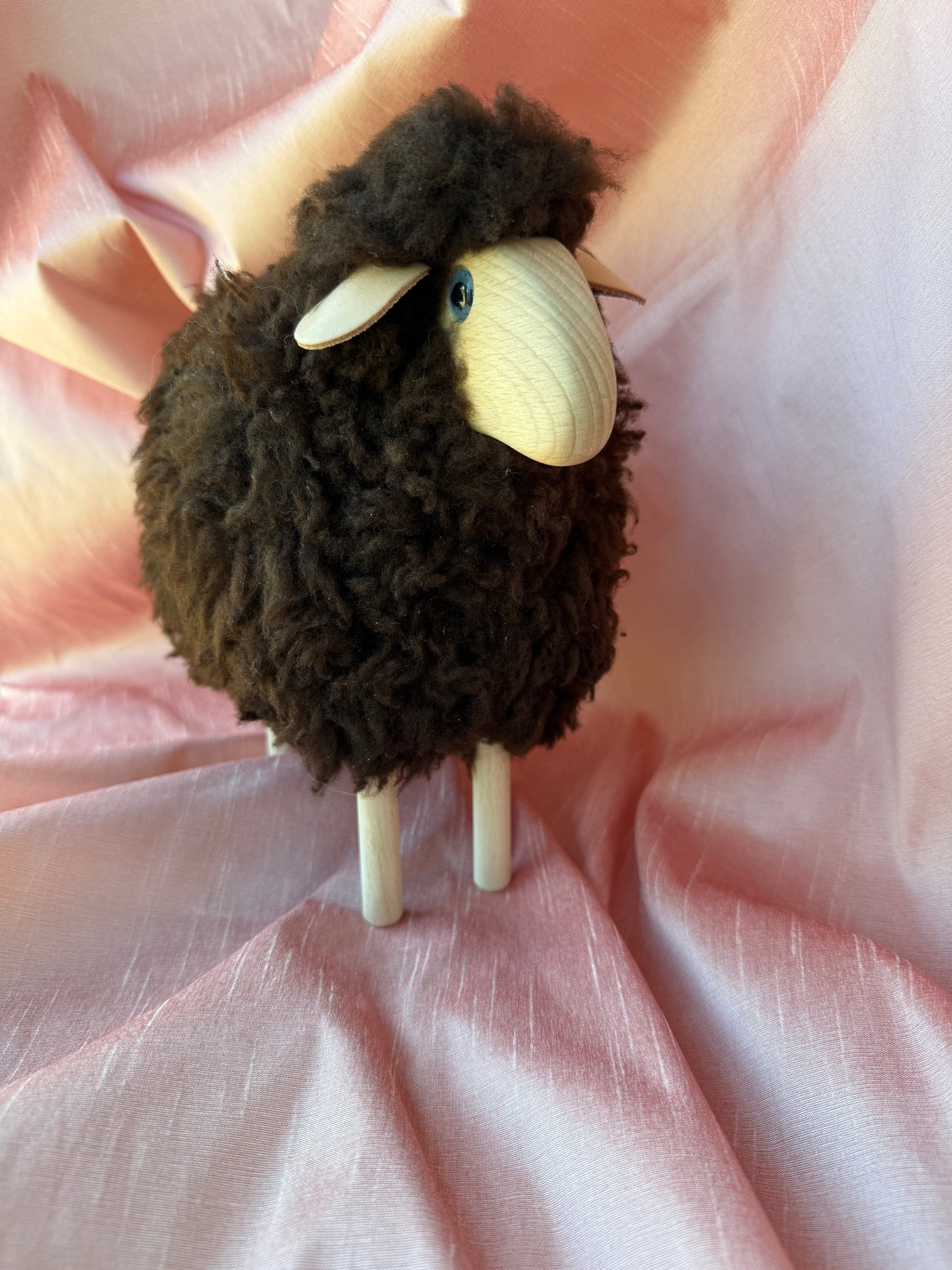 Little Lamb, Brown Fur Plush, Beech Wood | Meier, Germany