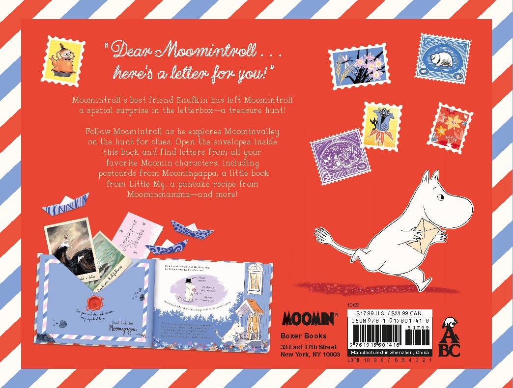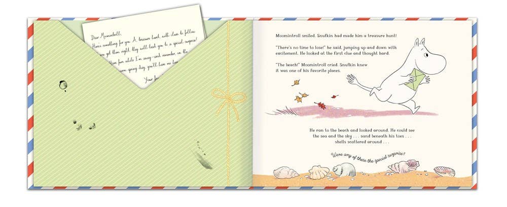 Snufkin leaves a treasure hunt for his best friend, Moomintroll, to solve while he is away on his winter travels. Packed full of envelopes, letters, and other mail, which the child reader will delight in opening. Hardcover Book with Printed Laminated Cover Picture Book; 10 9/16 x 8 inches; 32 pages.