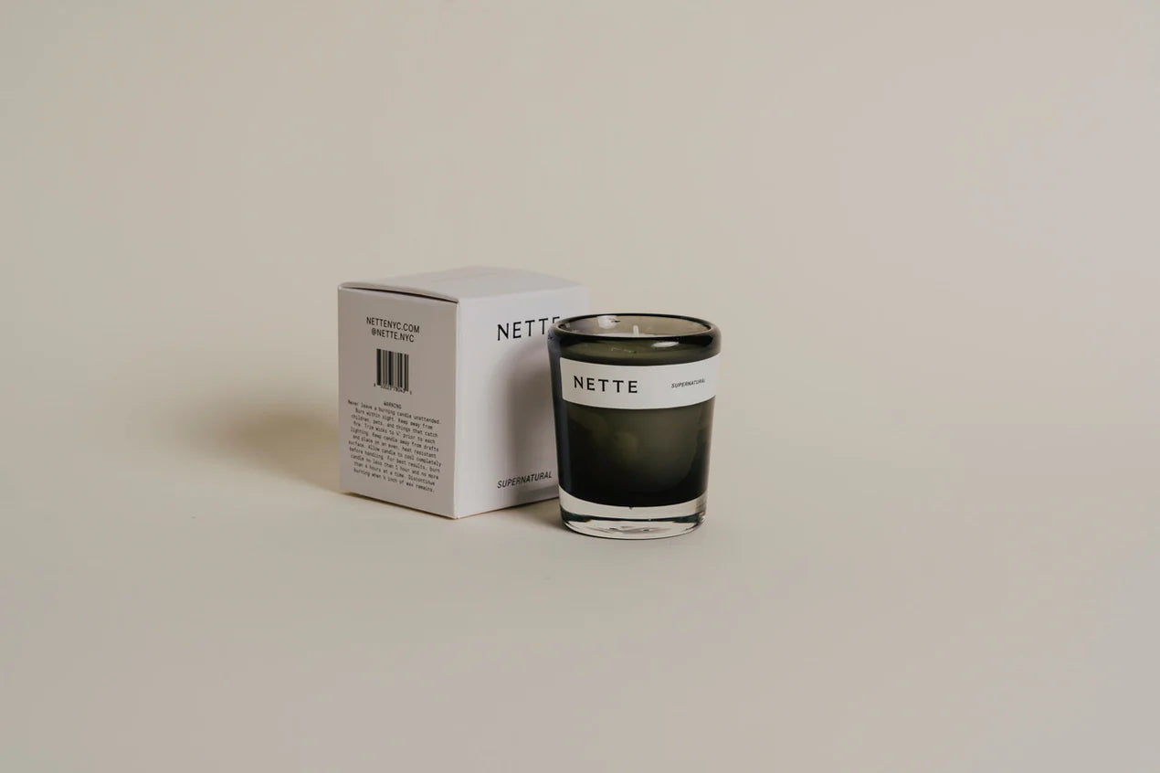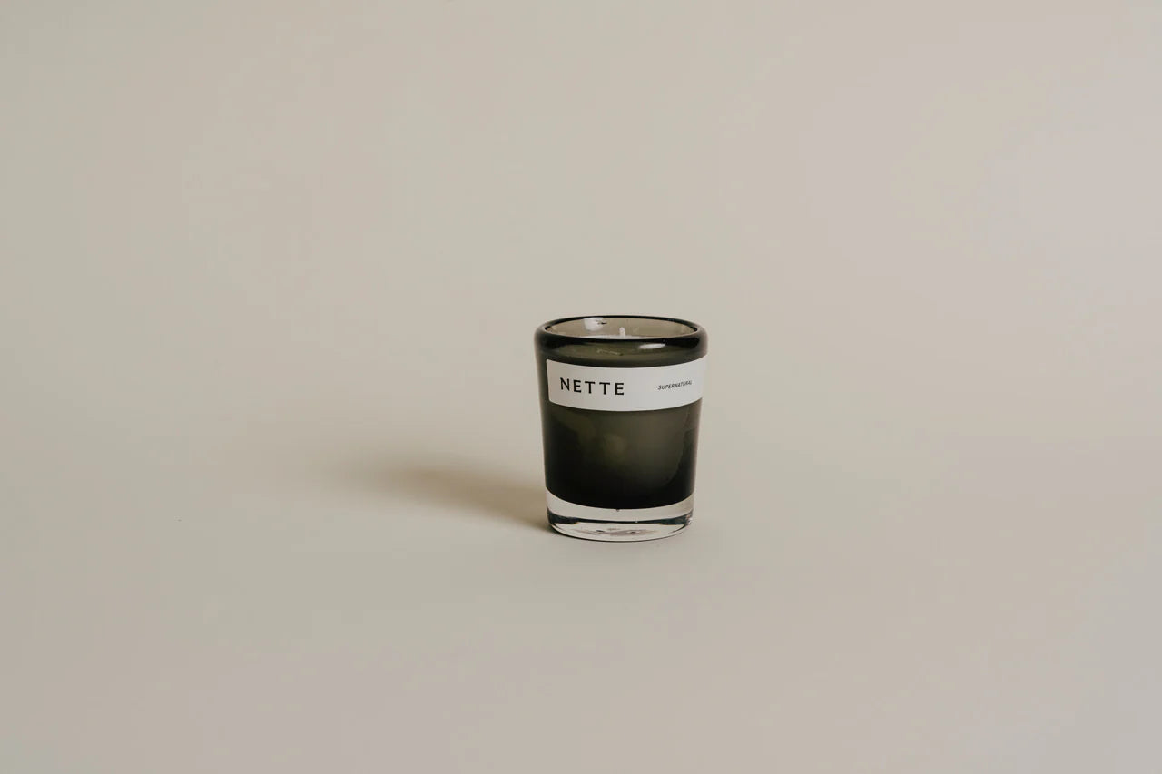 Nette 2.6 oz Smoky Glass Candle - Super Natural