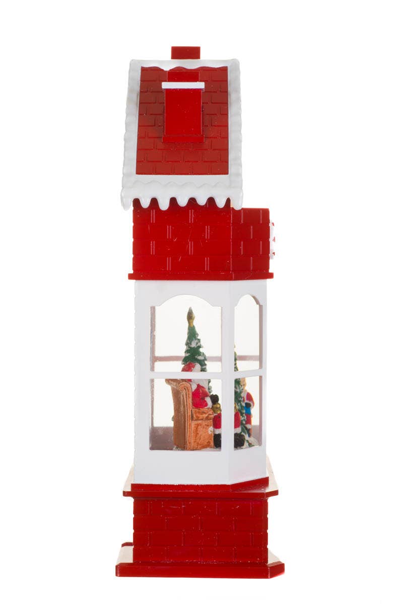 • Description: 11.25" Red Plastic Santa's Workshop Warm White LED Snow Globe with Swirling Glitter