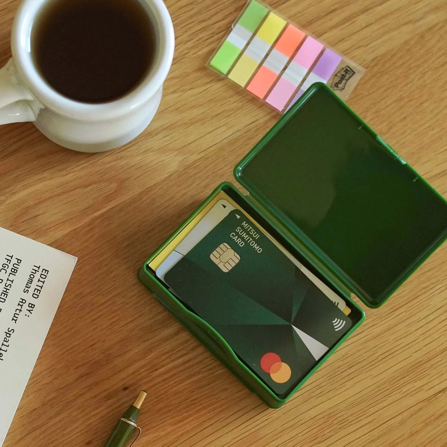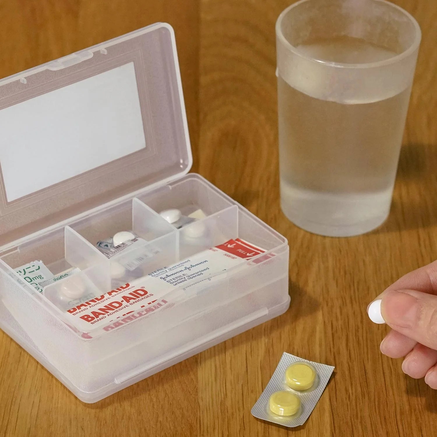 A plastic case by Penco, handy for throwing your stationery, tools, or random miscellaneous drawer items in! This storage container features two sides -- one side can fit approximately 40 business cards and the other side is divided into 4 compartments.