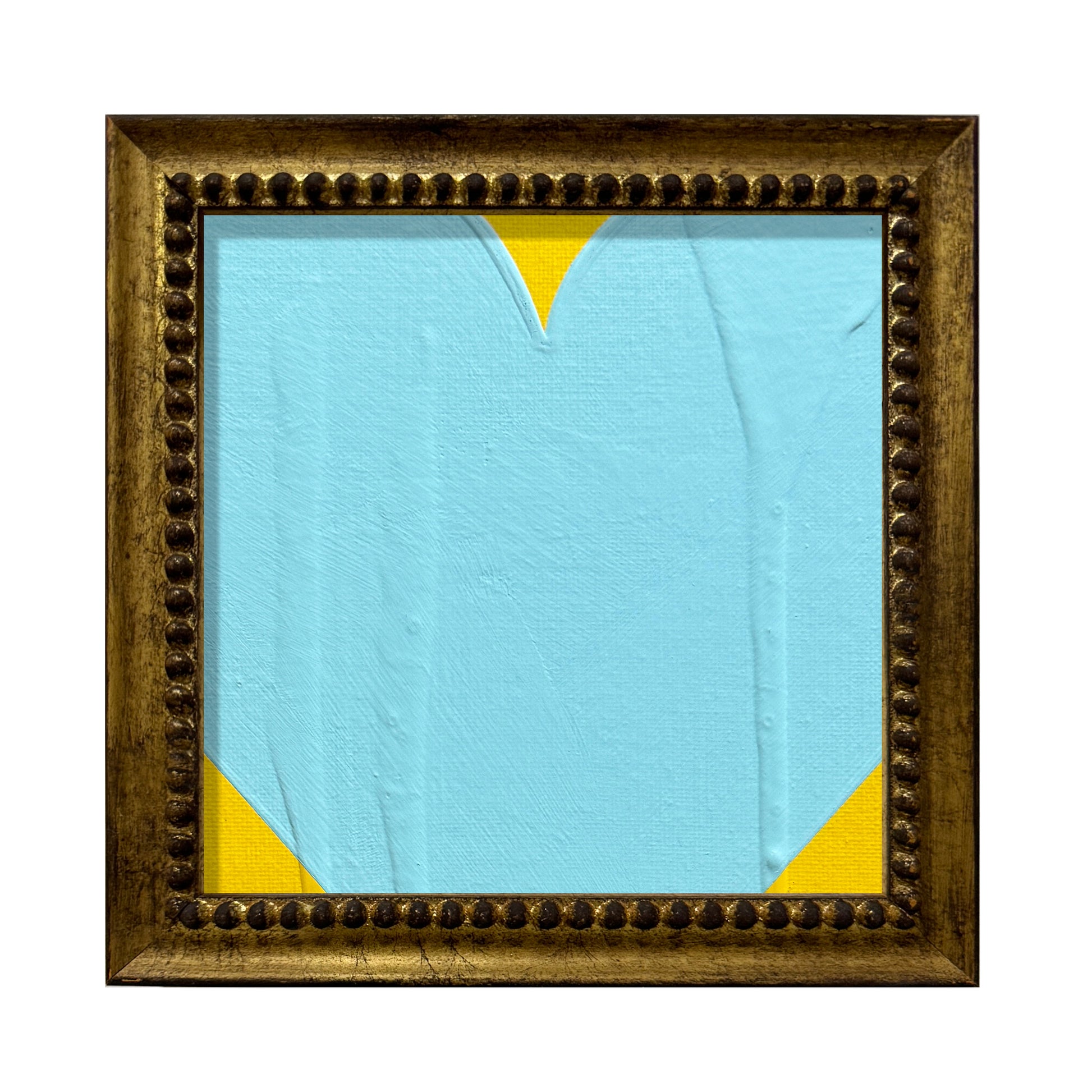 RON GIUSTI MINI PETITE HEART YELLOW AQUA ACRYLIC PAINTING - 6x6