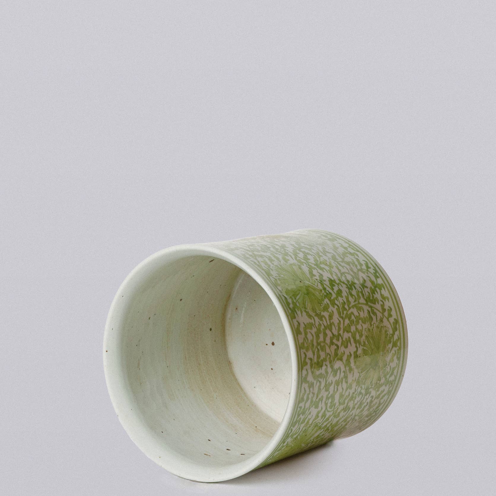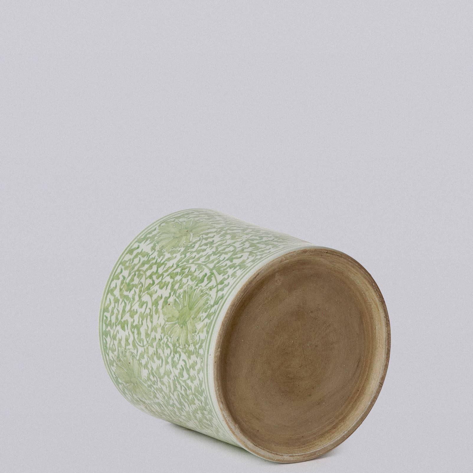 Scrolling Chrysanthemum Green and White Porcelain Cachepot
