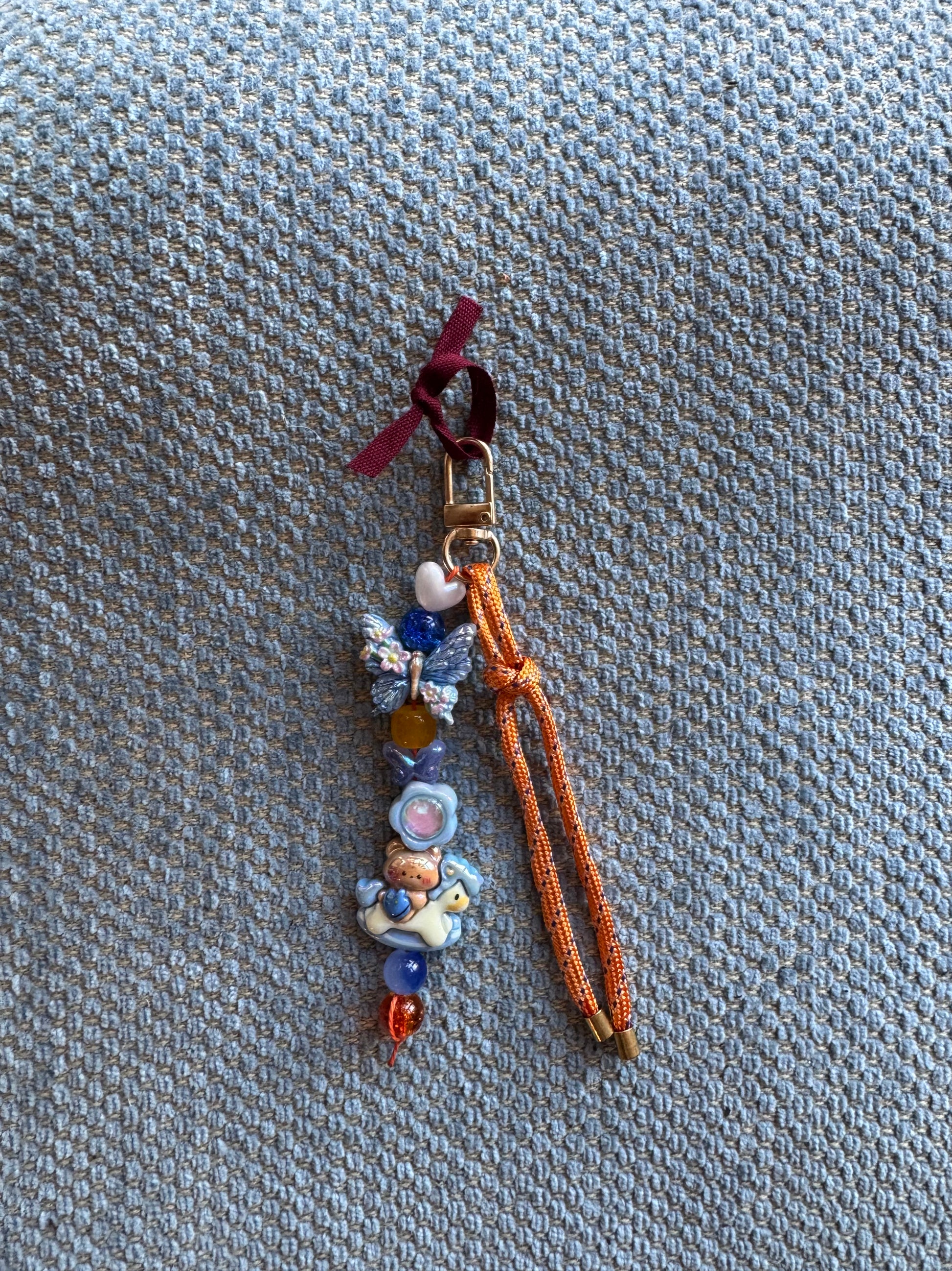 Sweet and Kind Bag Charm 1 bead strands - blue butterfly orange string