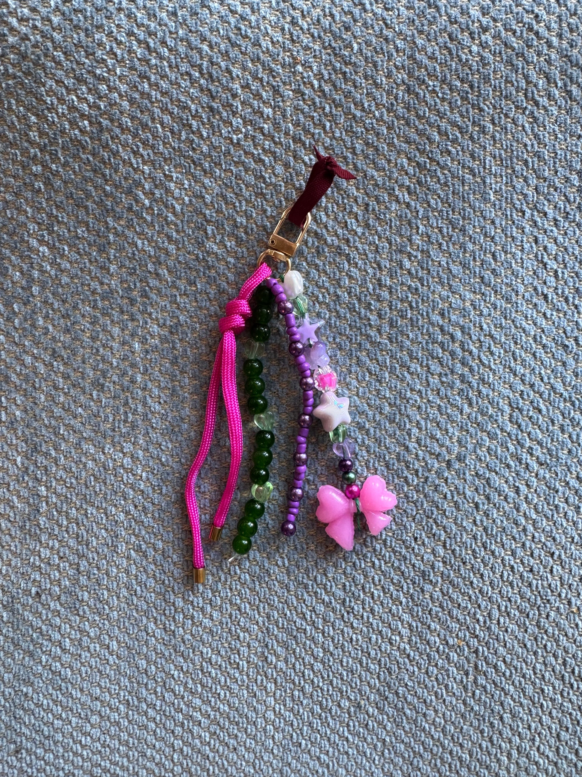 Sweet and Kind Bag Charm 3 bead strands - pink star and fuchsia cord