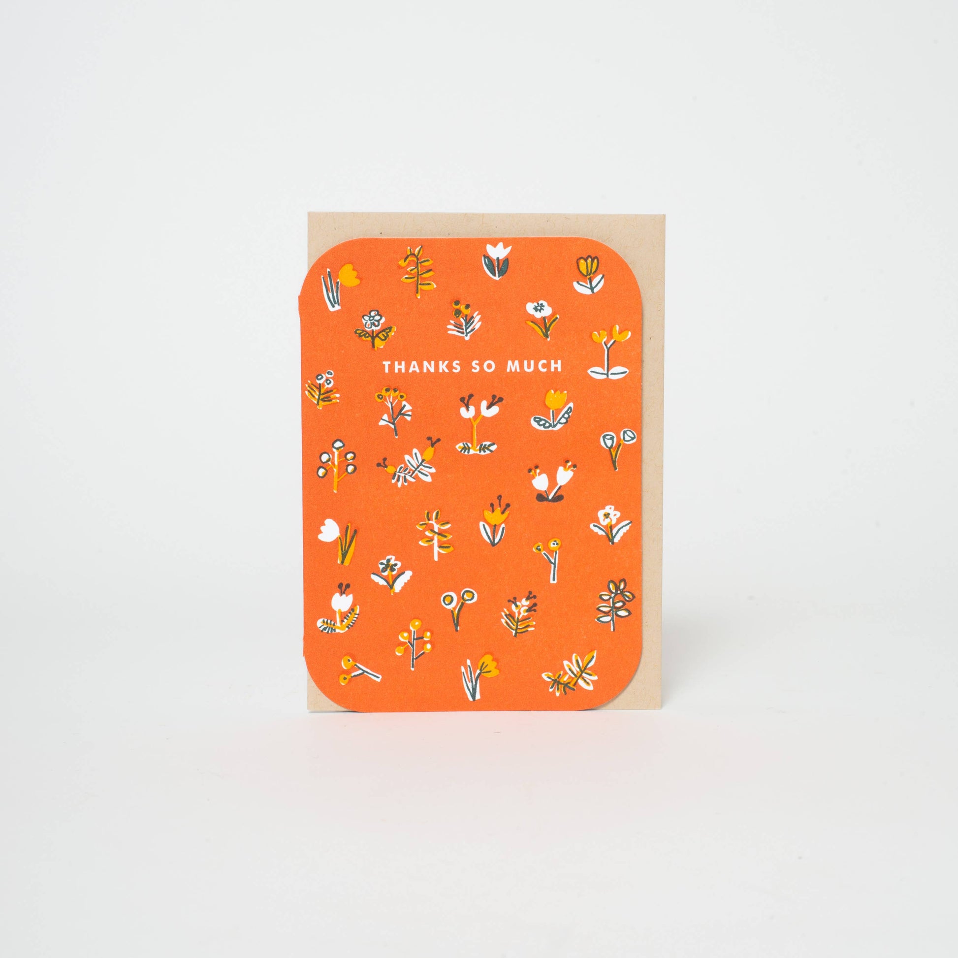 Thank You Little Flowers Letterpress Greeting Card by Egg Press: Plastic sleeve