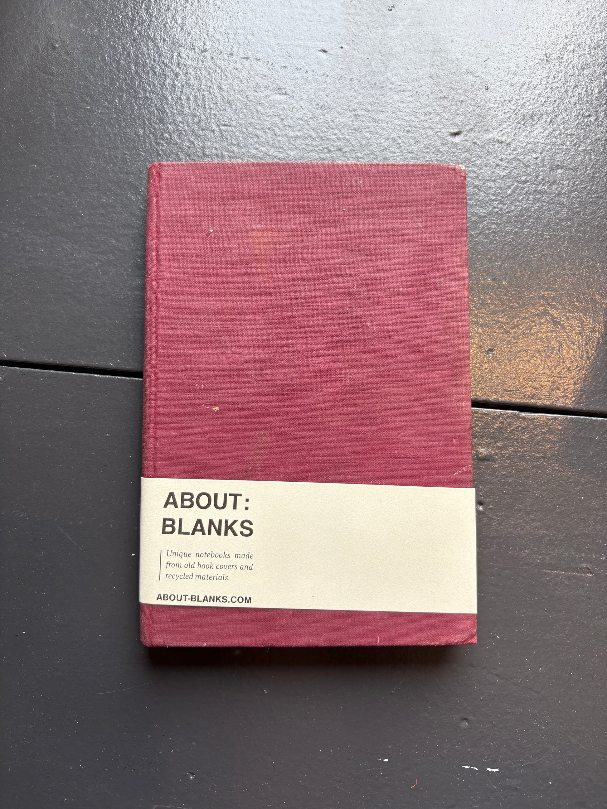 About Blanks' notebooks are unique, one of a kind pieces, handmade from old book covers. By removing the old inner works and refilling the covers with paper from responsible sources, new notebooks are created. Blank pages make the book suitable for use as a sketchbook, notebook, or journal.