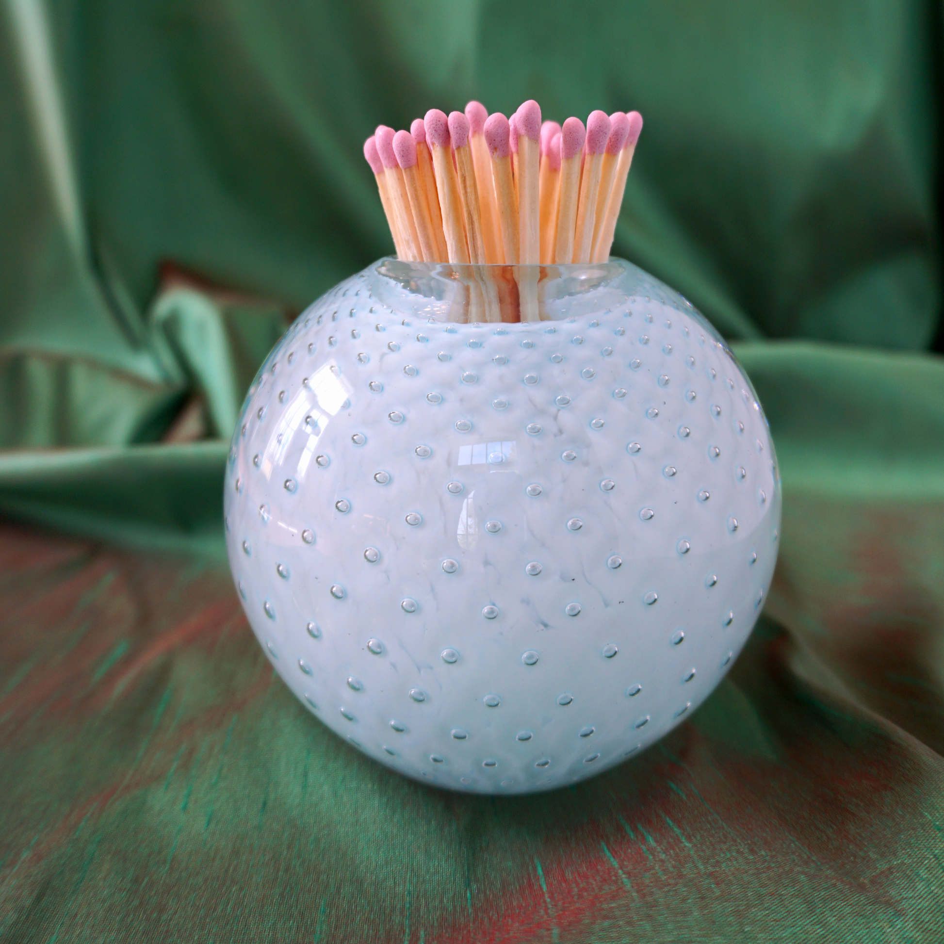 Blue Handblown Glass Match Striker with Matches